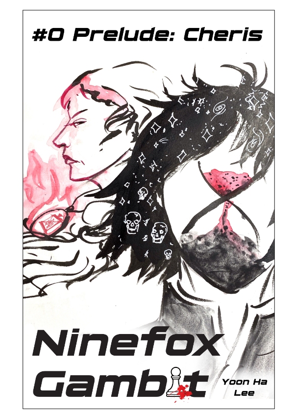 Ninefox Gambit (logo) - the “i” in “Gambit” is a white chess pawn splattered with blood.