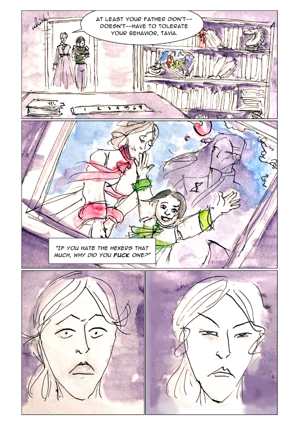 Cheris (off-panel): If you hate the Hexers that much, why did you fuck one?